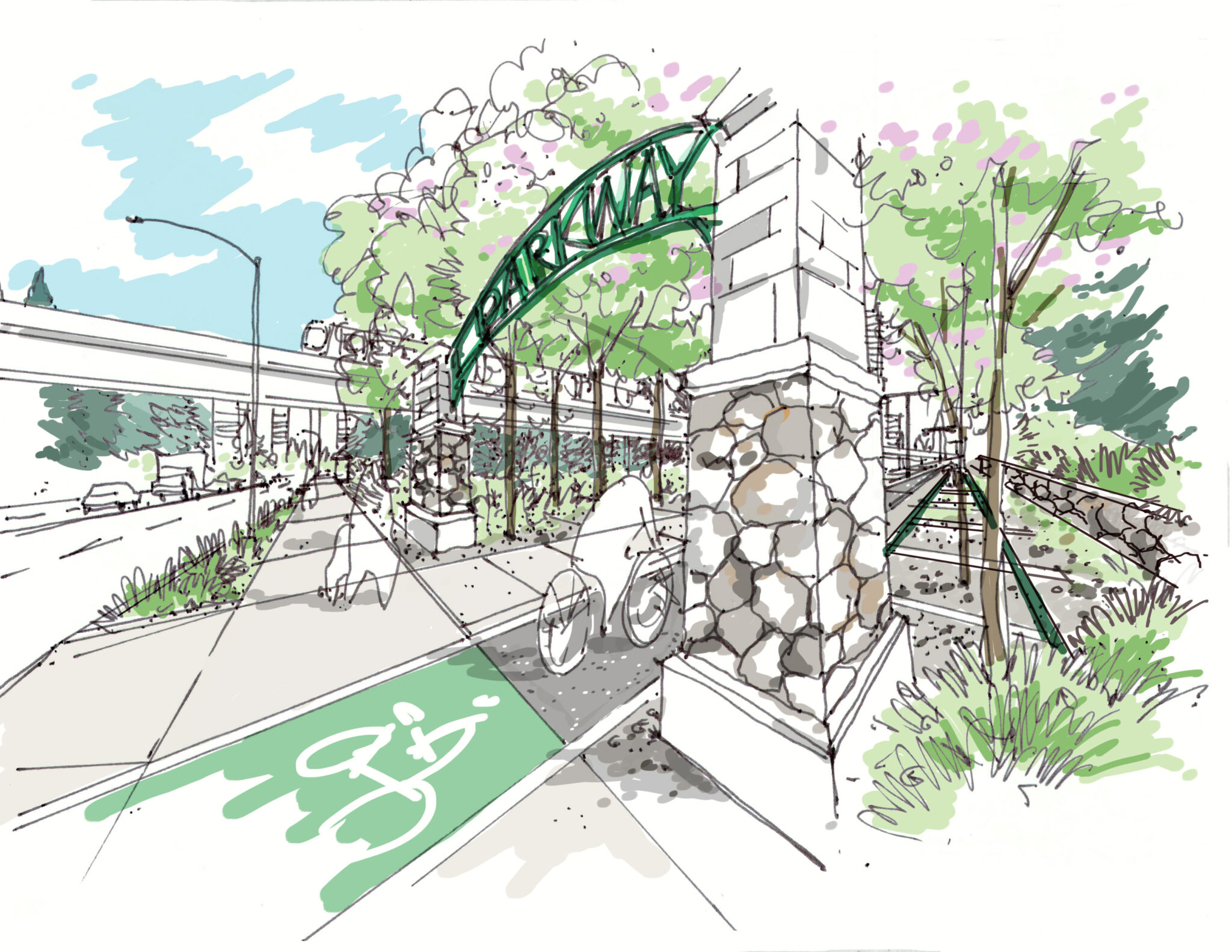 "...transform the Parkway into a lively linear park with new opportunities for recreation, lounging, socializing and events."