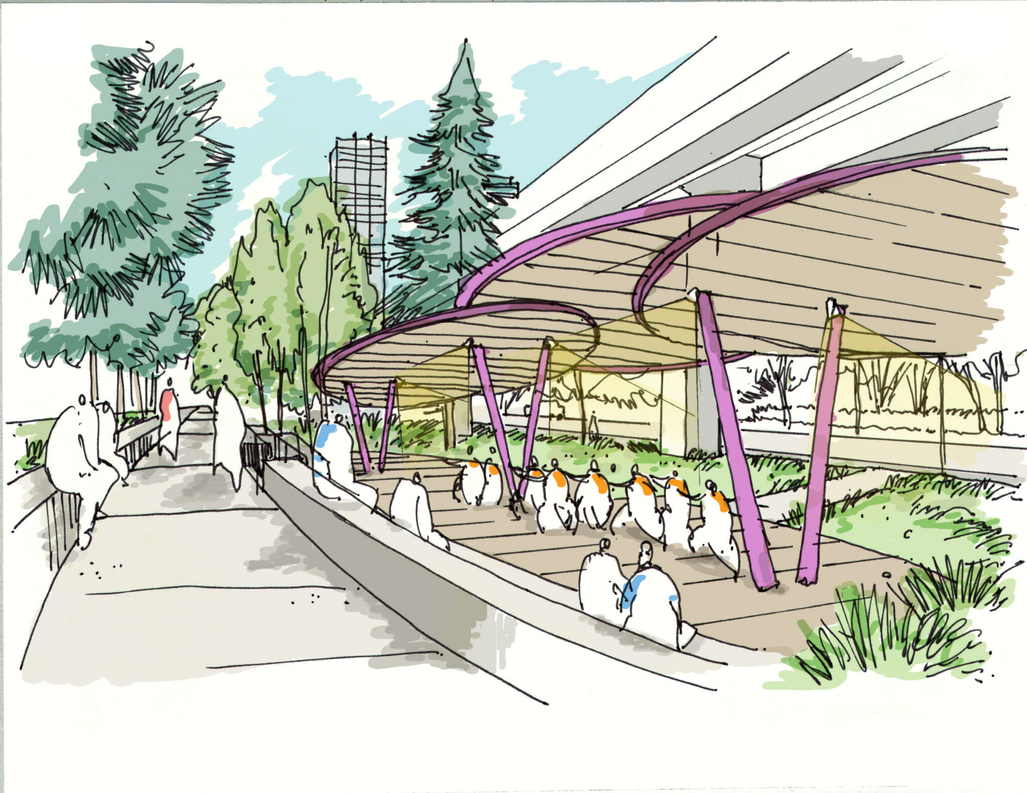 The project process has been a dynamic one, involving two engagement rounds with the public and key interested parties, as well as important collaboration with key partners BC Hydro, TransLink and the Host Nations. A complimentary momentum-building initiative led by the City for temporary summer activations along the Parkway – named “Parkway Alive” – has been running concurrently in summer months of 2023 and 2024, bringing momentum and excitement to the future of the Parkway.